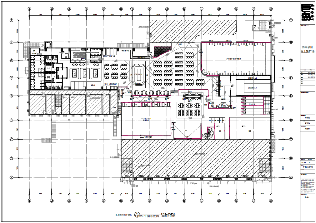 内部平面空间,我们把一二楼重新做了商铺划分和动线解析,将原有商铺位置进行调整和优化,一楼空间较低我们进行了空间亮化设计。